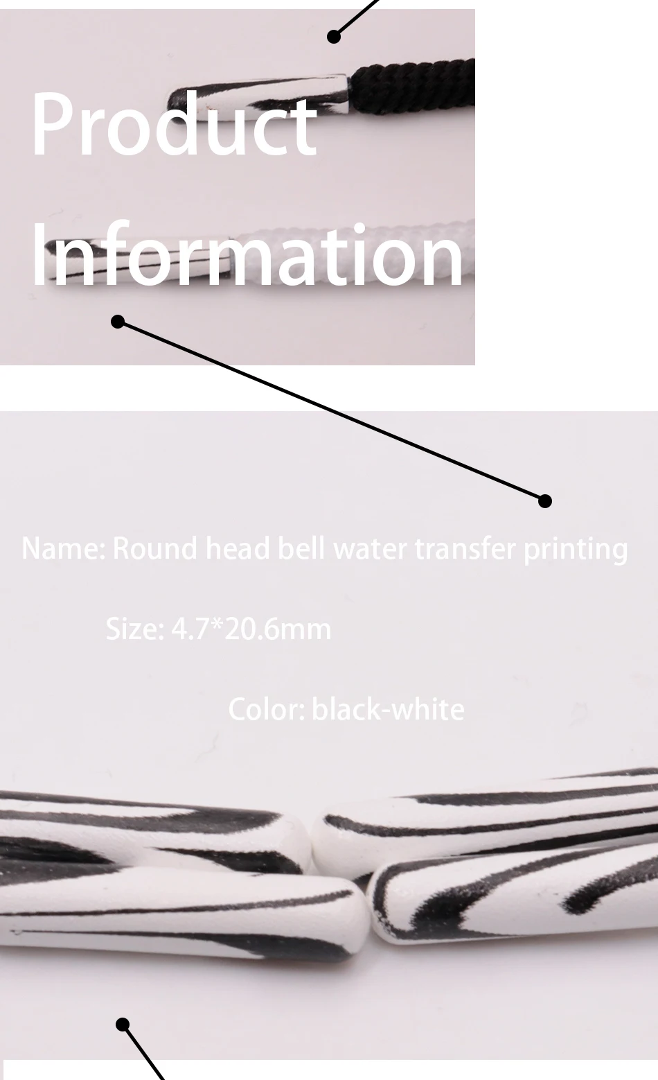 Weiou New Aglets 2021 4.7*20.6MM Black&White Liquid Pattern Lace Ends Easy Installation Metal Tips