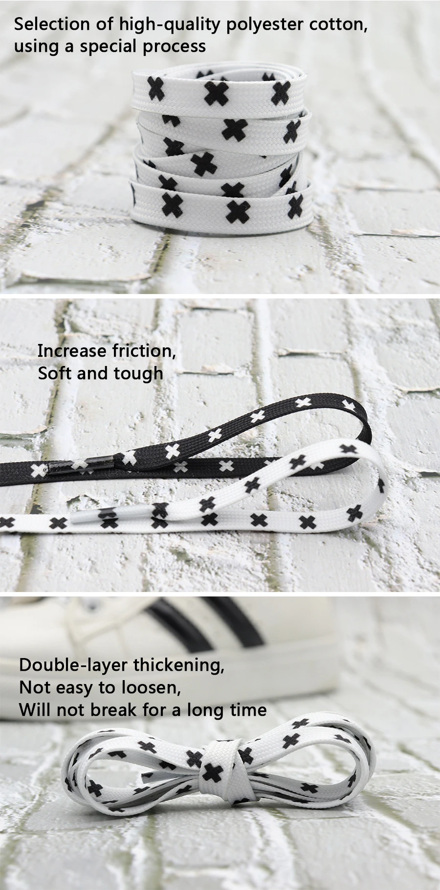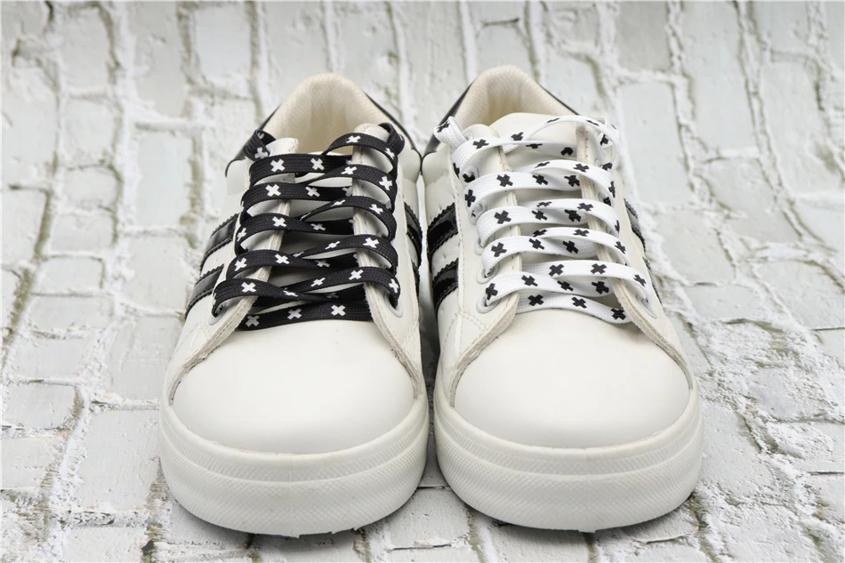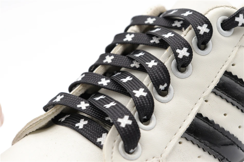 Weiou New Cute Shoestrings 0.7 Cm Flat Printed Black And White X Shoelaces Polyester Shoelaces Men