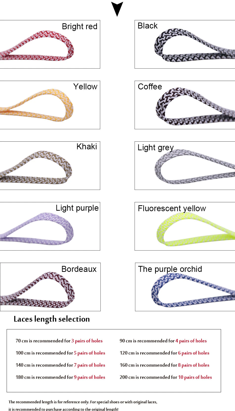 | -Customized for Yourself/Logo/Bulk Order ·We also could accept customised length and color according to your request as sample order,Please contact us for help. ·Support Printing Logo on the Plastic or Metal Aglets. ·If you want to make bulk order more than 50 pairs,Please contact us for a better price. |