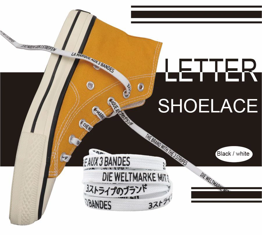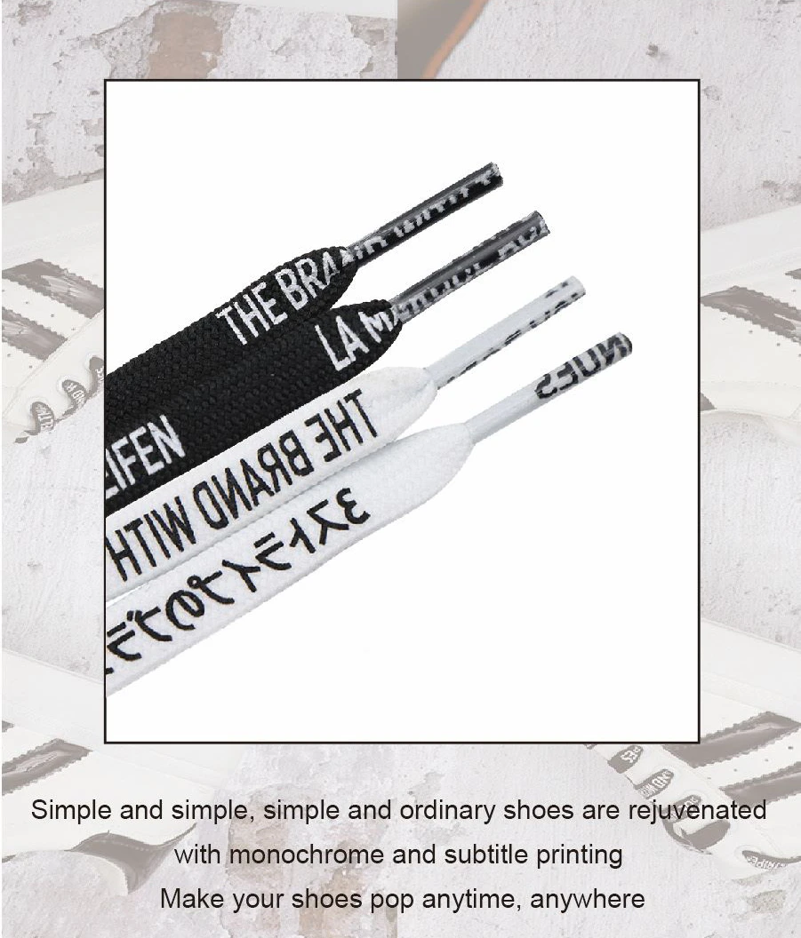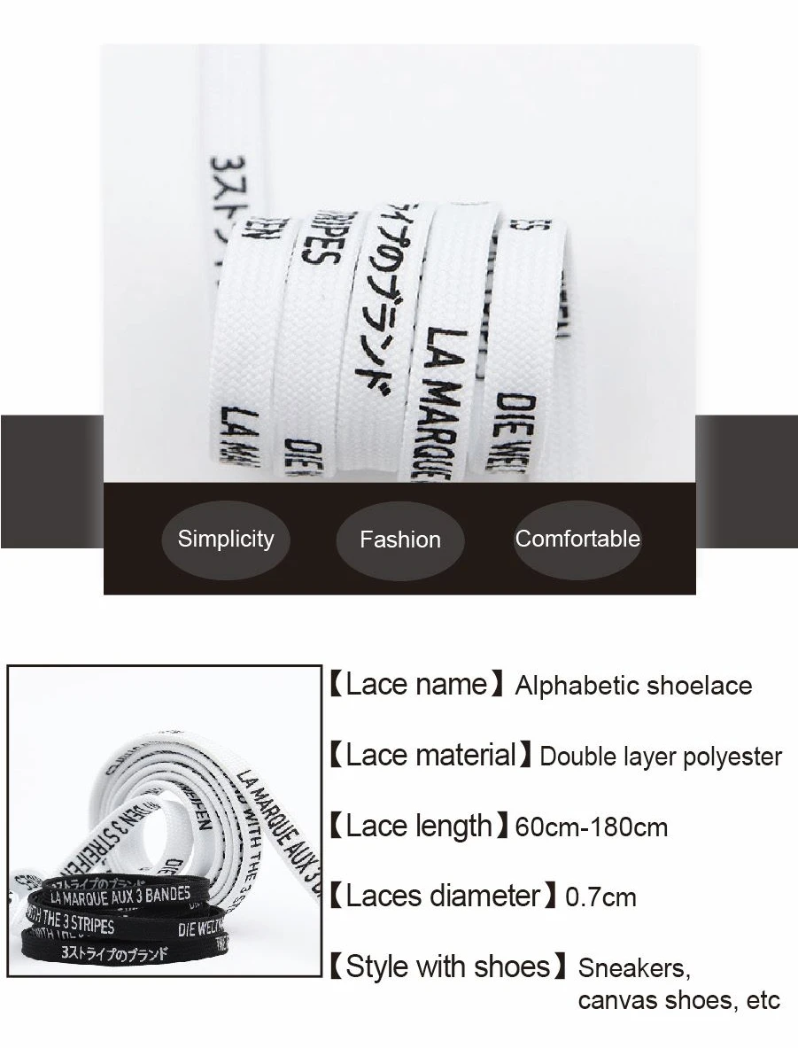 Weiou Outside Sport Shoelaces 0.7cm Flat Printed Alphabetic Black And White Polyester Shoestring