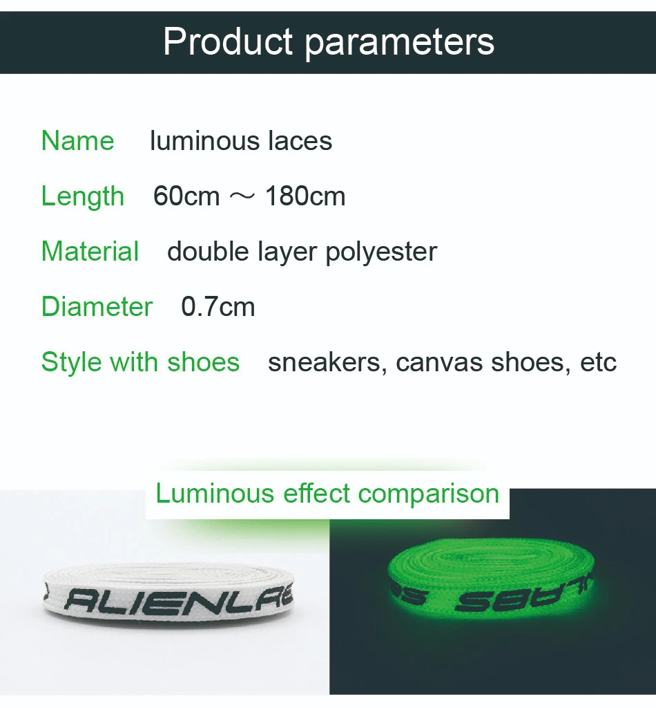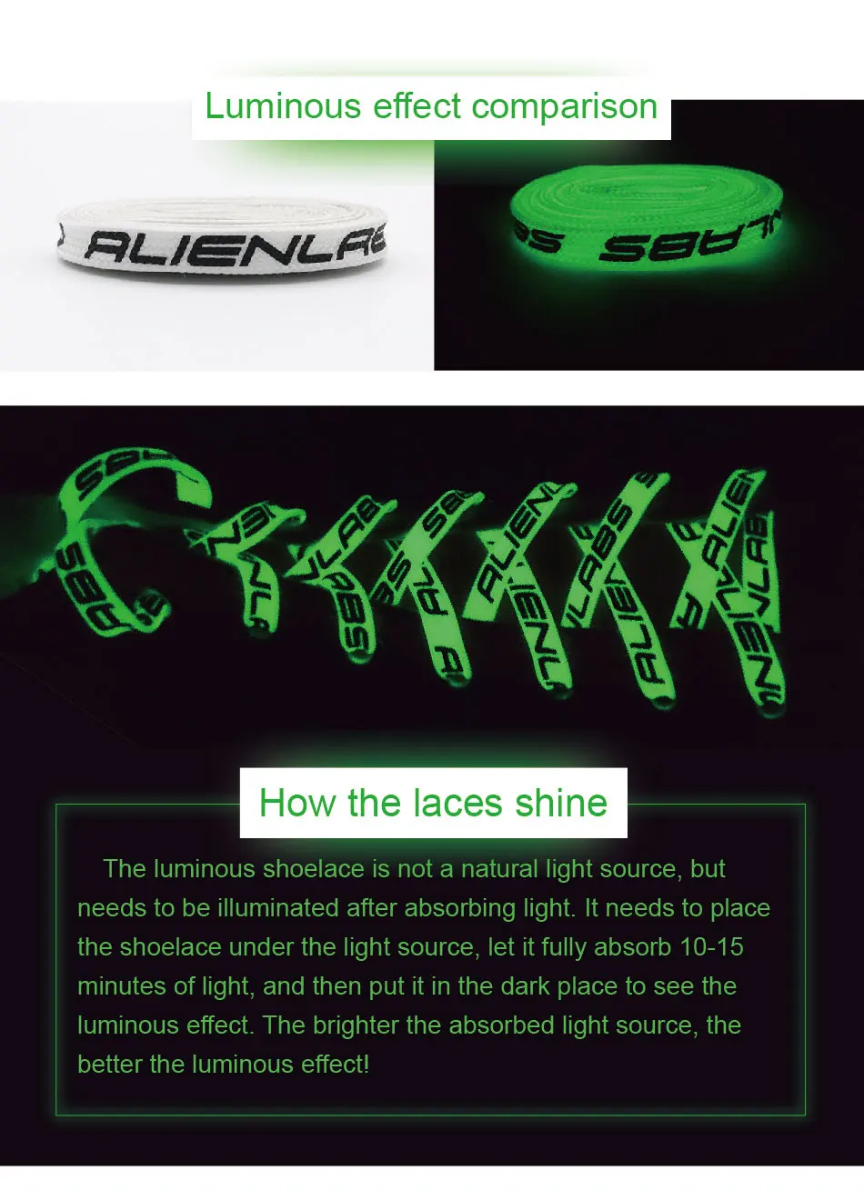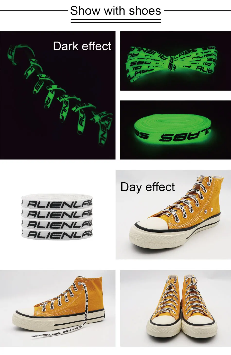 Weiou Print Sports Shoelaces 0.7 Cm Flat White With Black Font Luminous Shoestrings For Boy Men Women Sneakers Grow In The Dark-1.Size