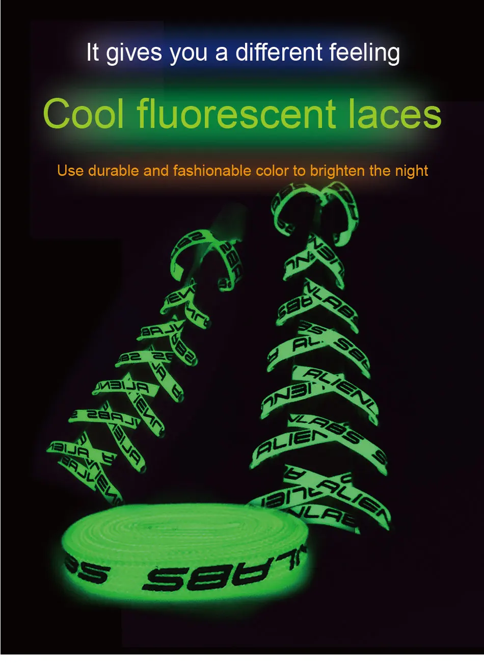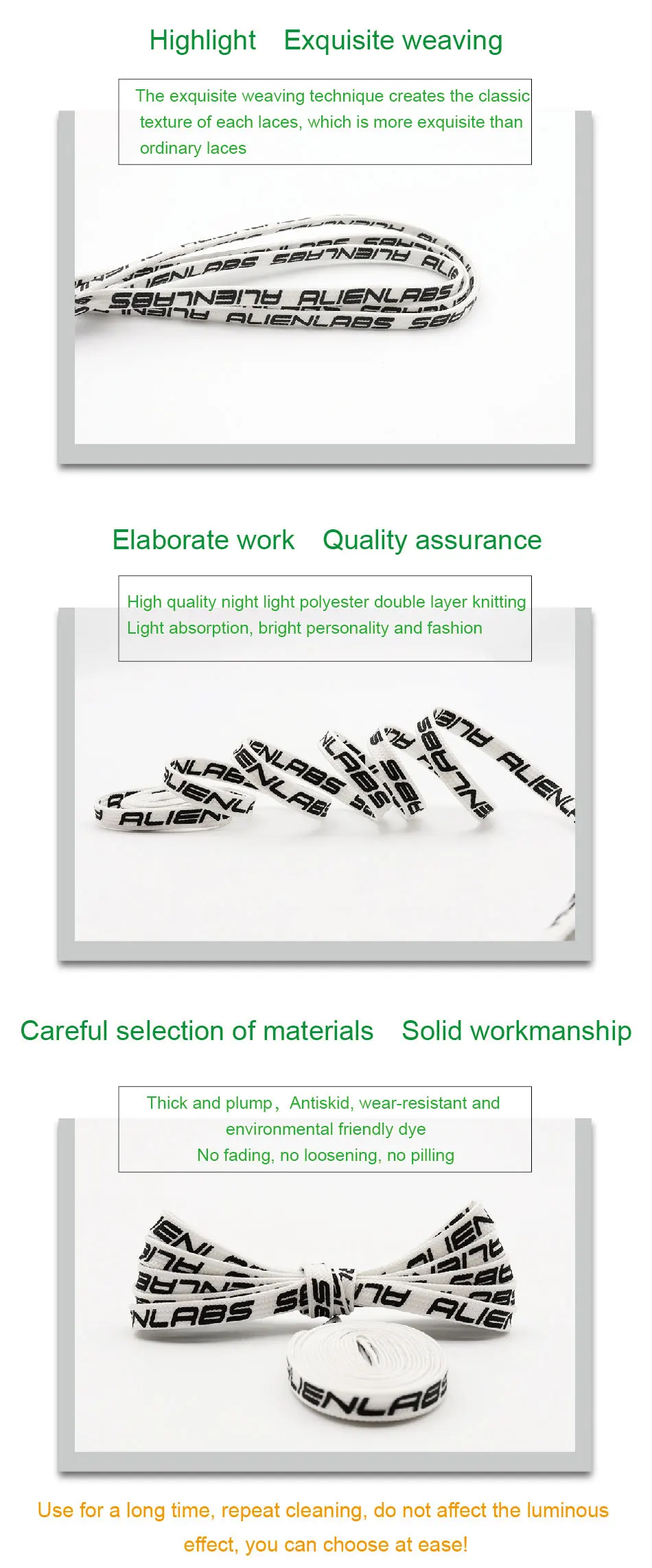 Weiou Print Sports Shoelaces 0.7 Cm Flat White With Black Font Luminous Shoestrings For Boy Men