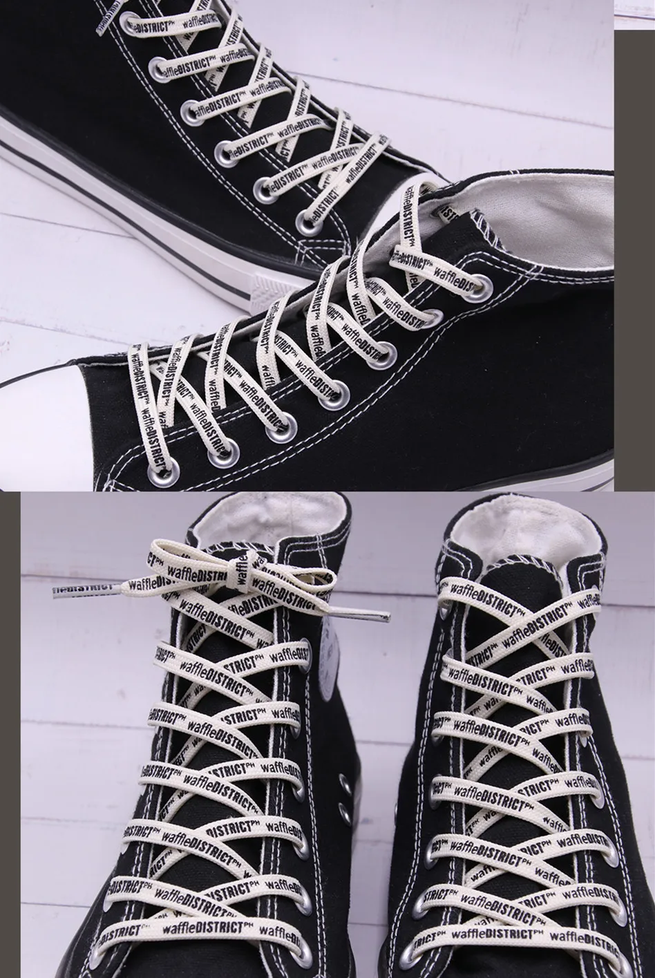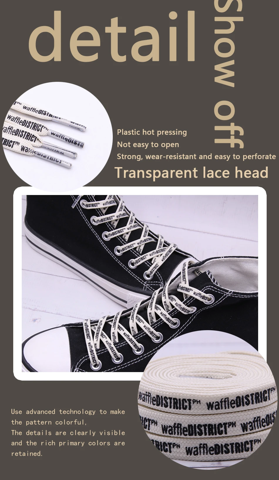 Weiou Retro Style Shoelace 0.7 Cm Flat Type Printed WaffleDistrict Ph Beige Yellow Boot Shoe Strings Women's Sneakser Shoe Laces1.Size: 60-180cm * 0.7cm ;