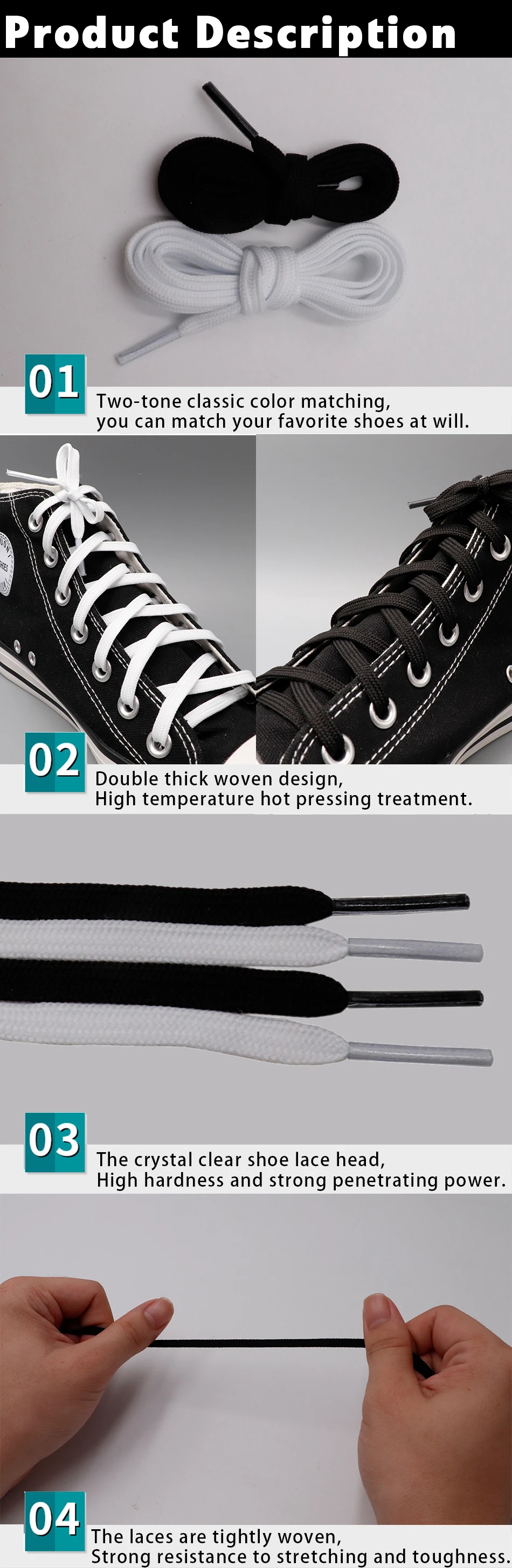 | -Customized for Yourself/Logo/Bulk Order ·We also could accept customised length and color according to your request as sample order,Please contact us for help. ·Support Printing Logo on the Plastic or Metal Aglets. ·If you want to make bulk order more than 50 pairs,Please contact us for a better price. |