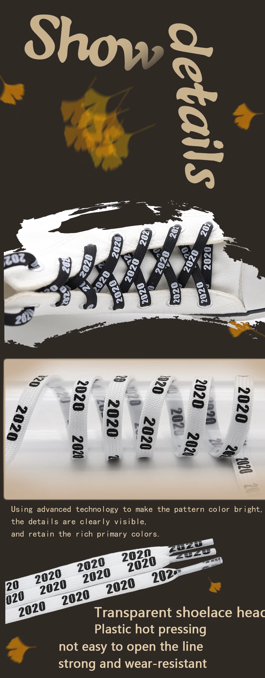 Weiou Simple Style Cute Shoelaces 0.7 Cm Flat Printed 2020 Letter Polyester Shoe Lace For Women