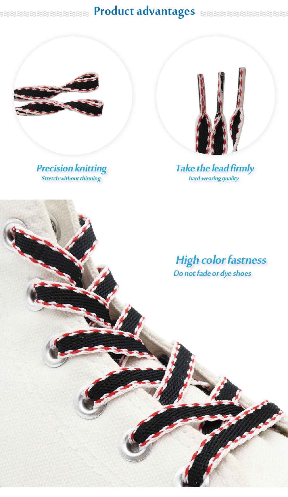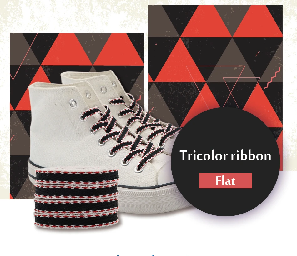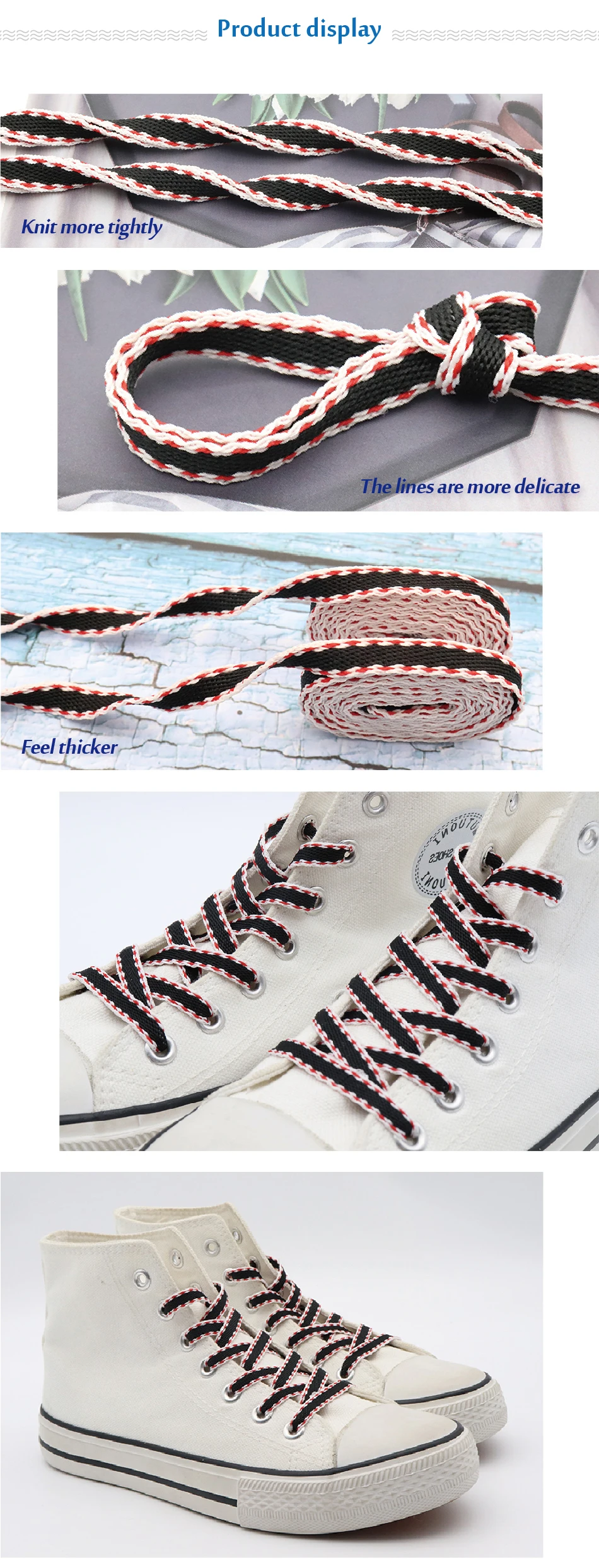 Weiou Simple Style CuteShoelaces 0.8 Cm Flat Black-white-red Tricolor Polyester Shoe Lace Canvas Sneaker Custom Color 60-200cm![]() ![]()
