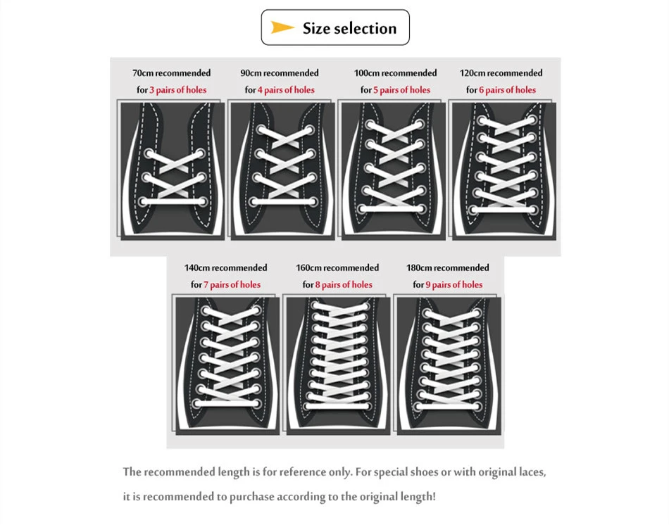 | Buyers please note:1.Please fill in your full name in the shipping address,And make sure the rightshipping address And zip code.If you don't do it,you may not be able to receive your packages. 2.Depending on the personal computer monitor, there will be Chromatic aberration, which is a normal phenomenon. 3.Shoelaces have a length error,the error range is about 1-3cm. 4.If you want to buy some tips for your shoelaces, we can install for you for free. |