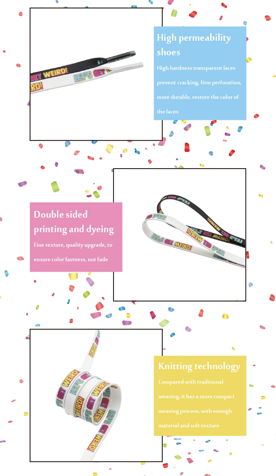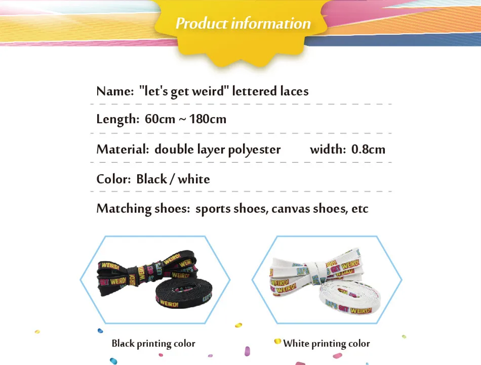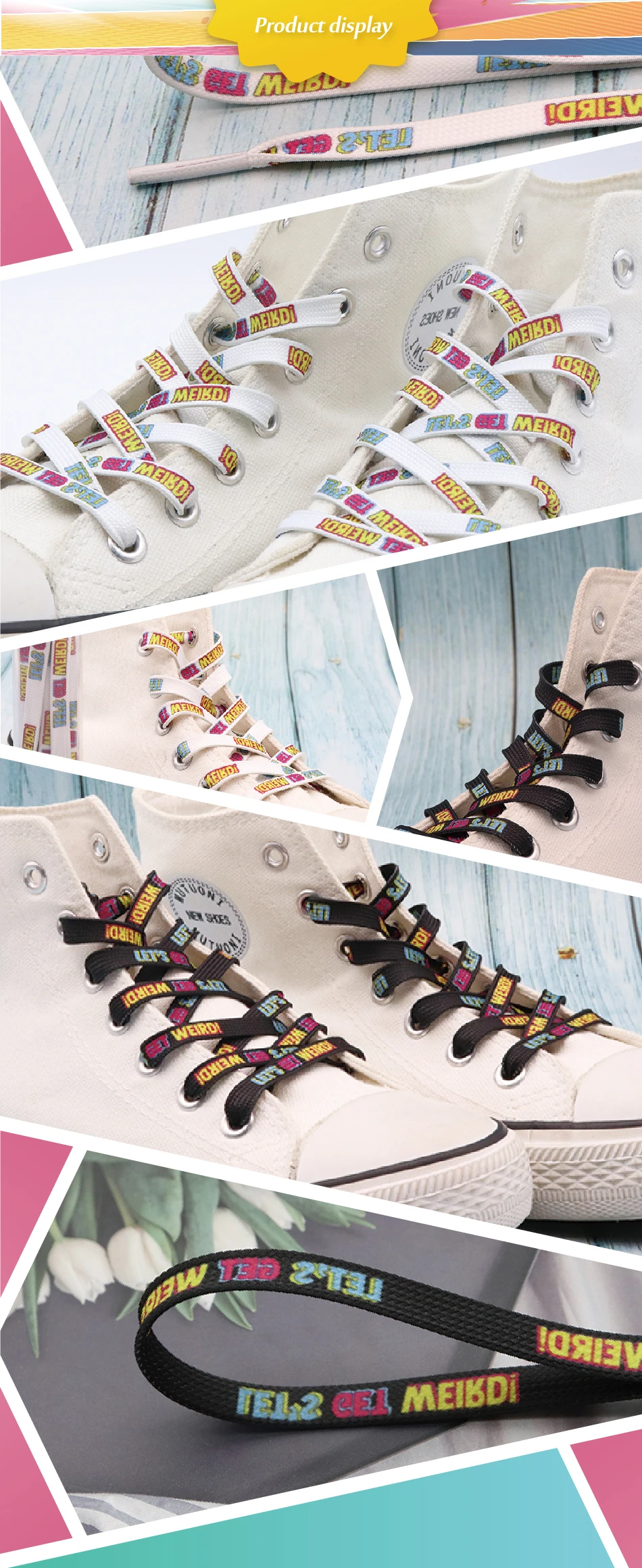 Weiou Sport Printing Hiking Shoelaces 0.8 Cm Flat Printed Let's Get Weird Black And White Cut Shoelaces Support Custom Wholesale-1.Size