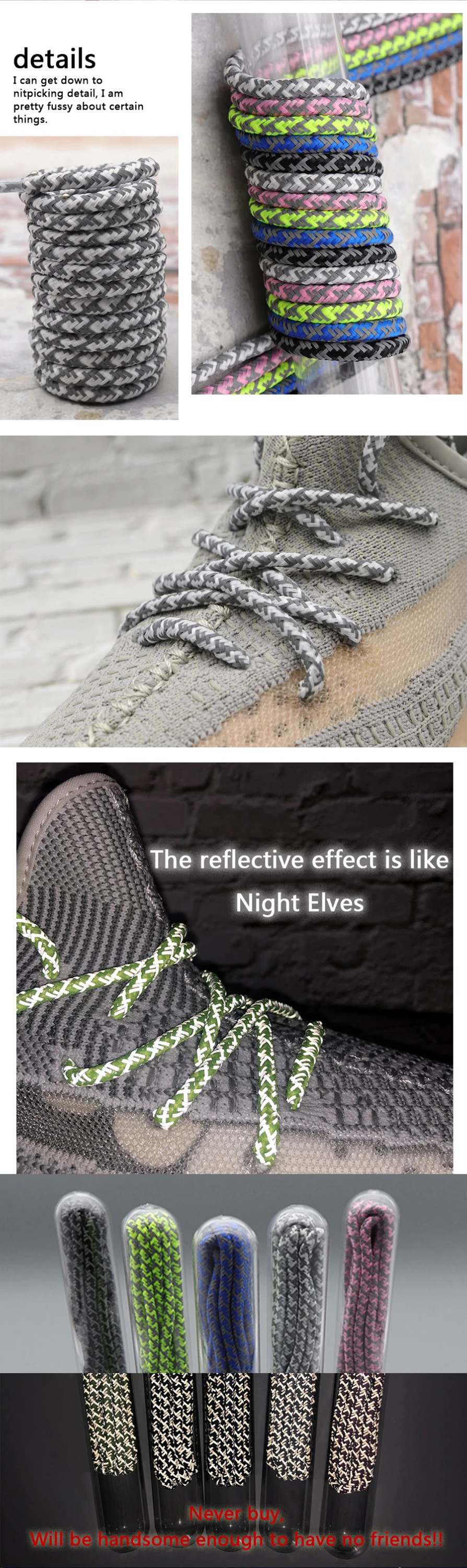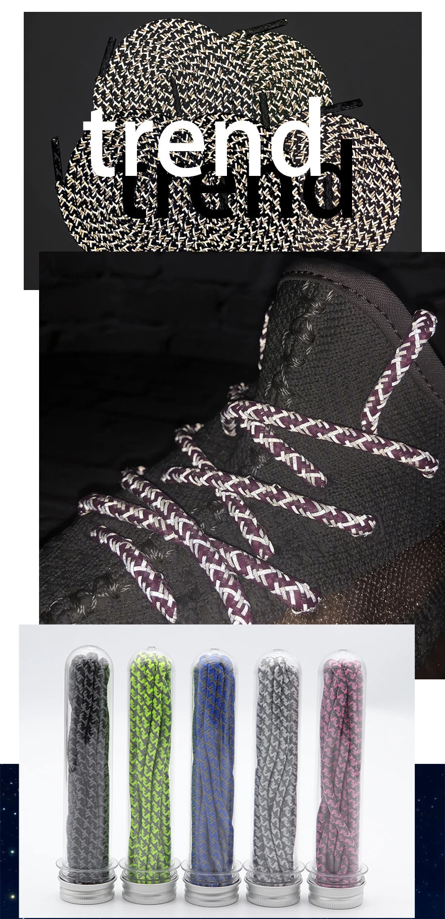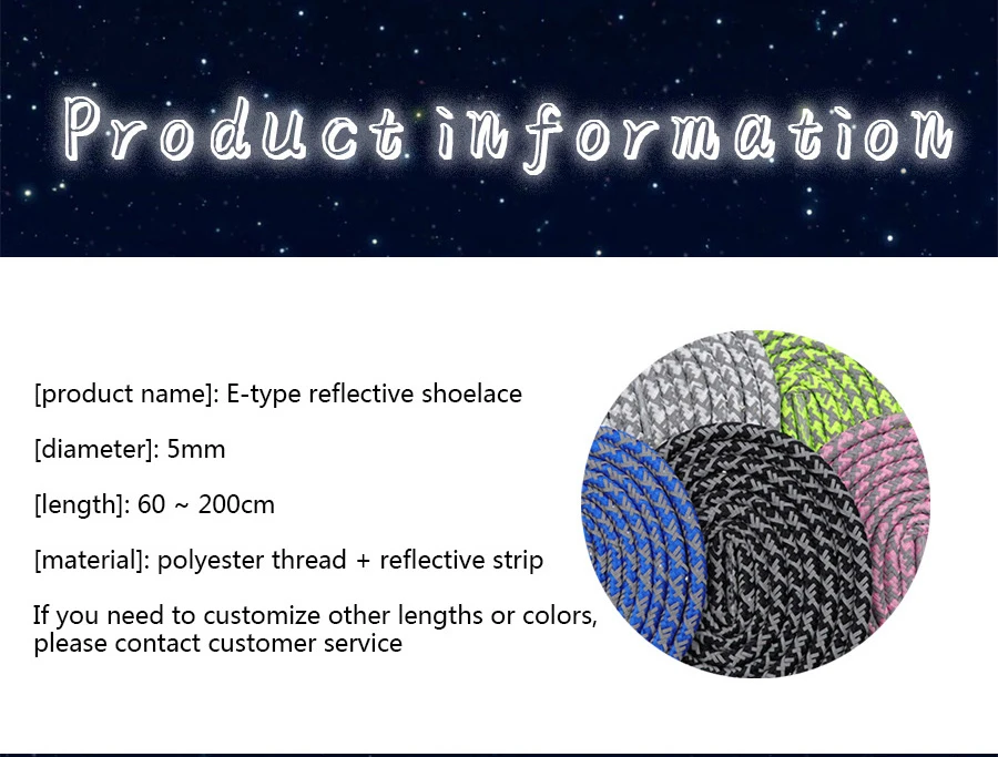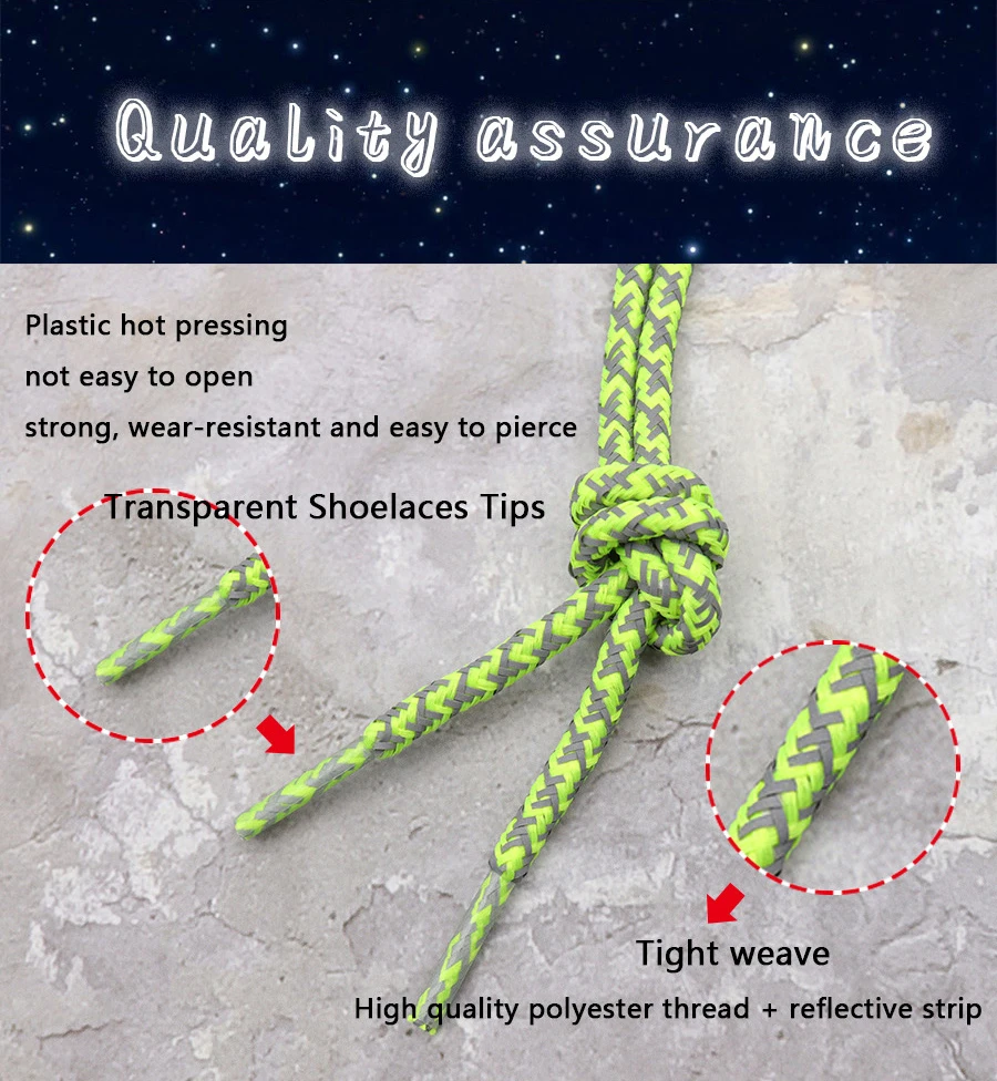 Weiou The New Listing Trendy Shoelaces Round E-Type Reflective Shoestrings Night Running Safety Shoe Laces For Sneakers Women1.Size: 60-180cm * 0.5cm ;