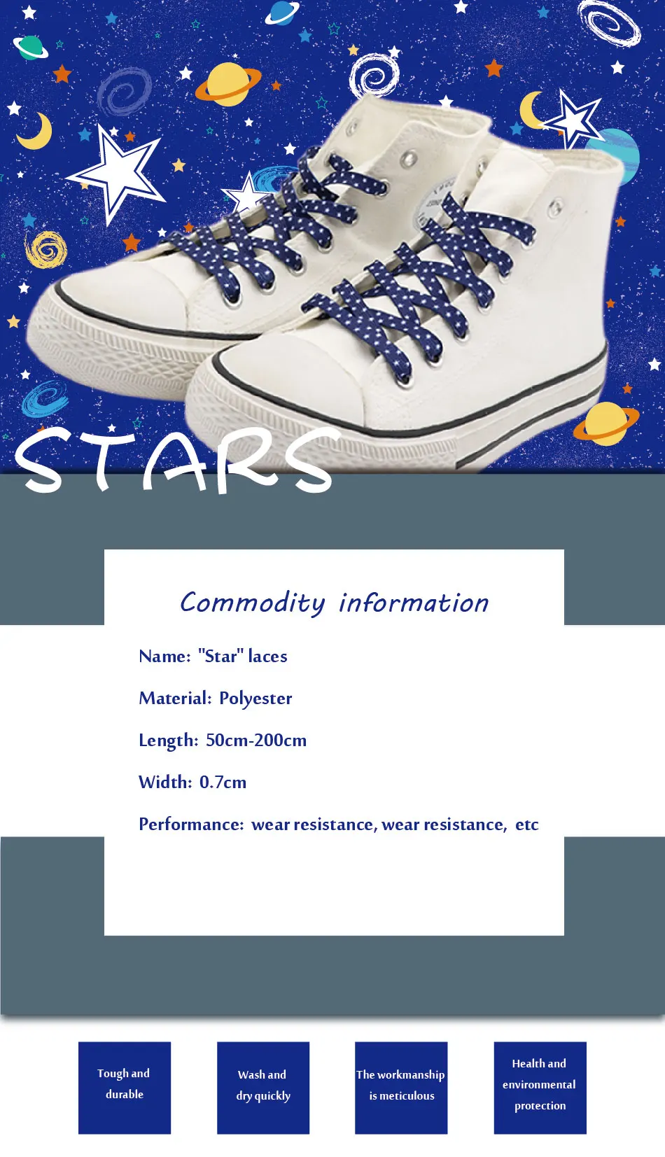Weiou Trend personality latchet sports canvas small white shoes laces with printed Blue White Star