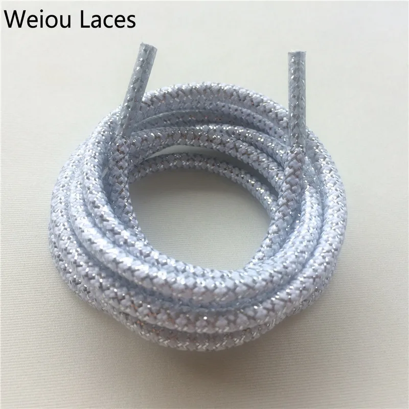 Weiou Two Toned Shoe Laces Gold Silver Metallic Shoelaces Glitter Shoe Strings White Round