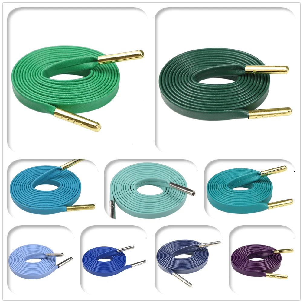 Weiou Vibrant Laces Green/Blue Main Solid Color Vigorous Youth Leather Shoelaces With Metal Alget