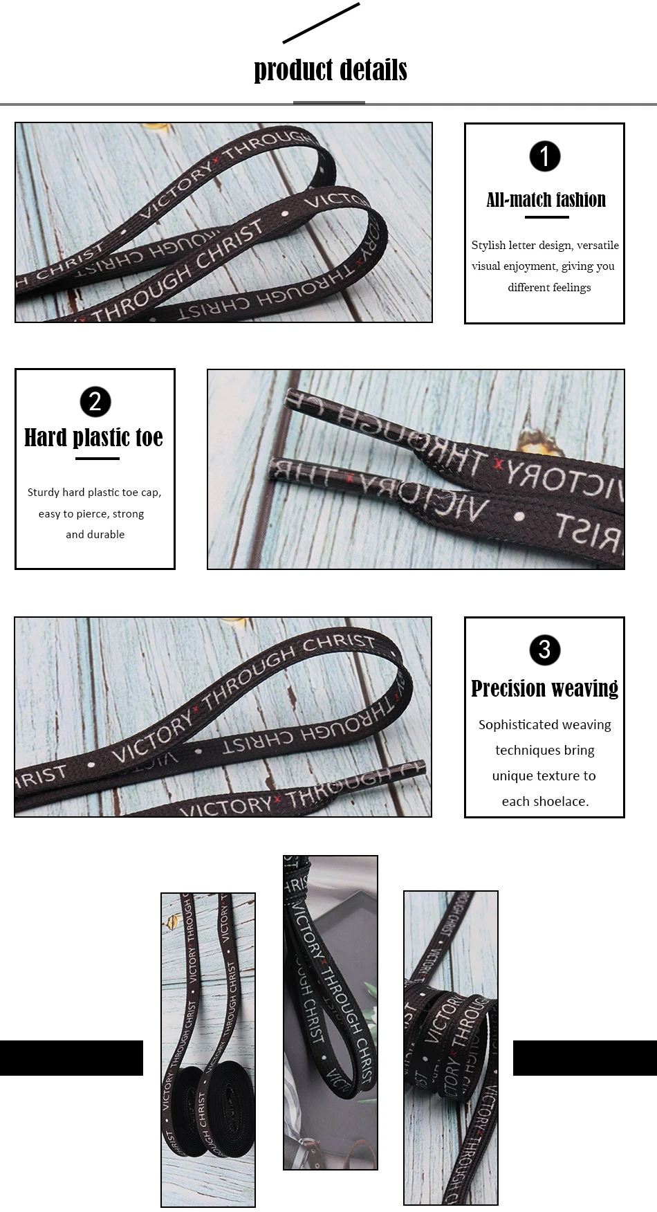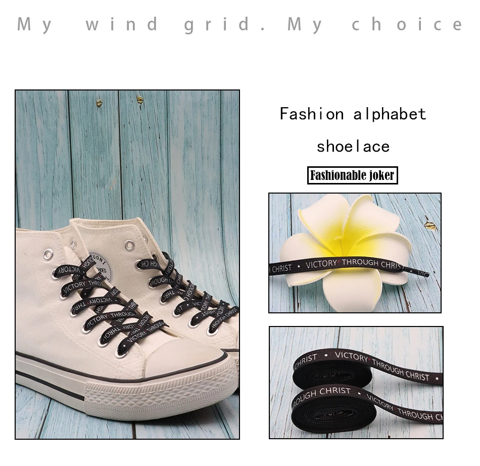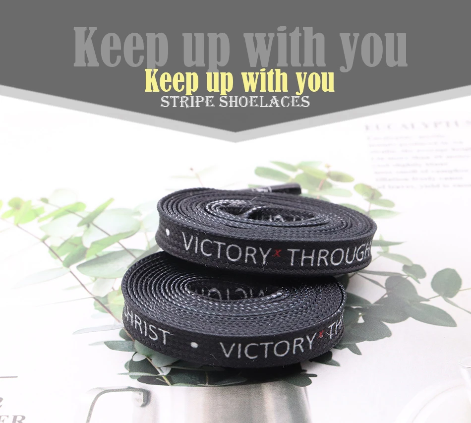 Weiou Women Canvas Personality Shoelaces 0.8 Cm Flat Black Printed White Christ Makes Us Victory Letter Polyester Shoe Laces![]() ![]() ![]() ![]()