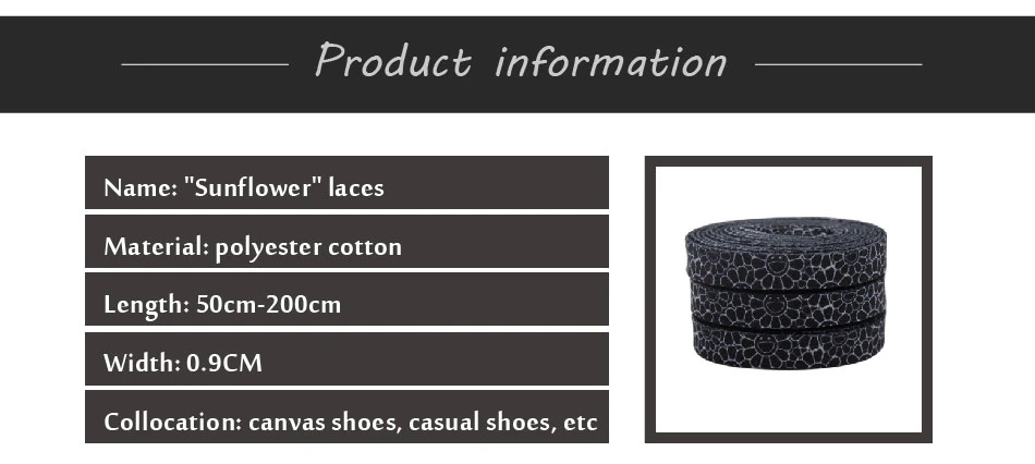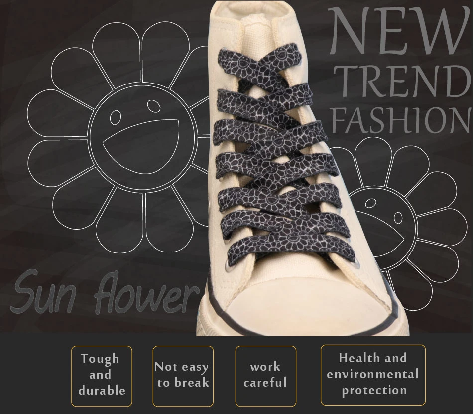 Weiou Women Child Sport Canvas Sneaker Shoelace 9mm Flat Cotton Shoestrings Black Printed White Sunflowers Pattern Drop Shipping![]() ![]()