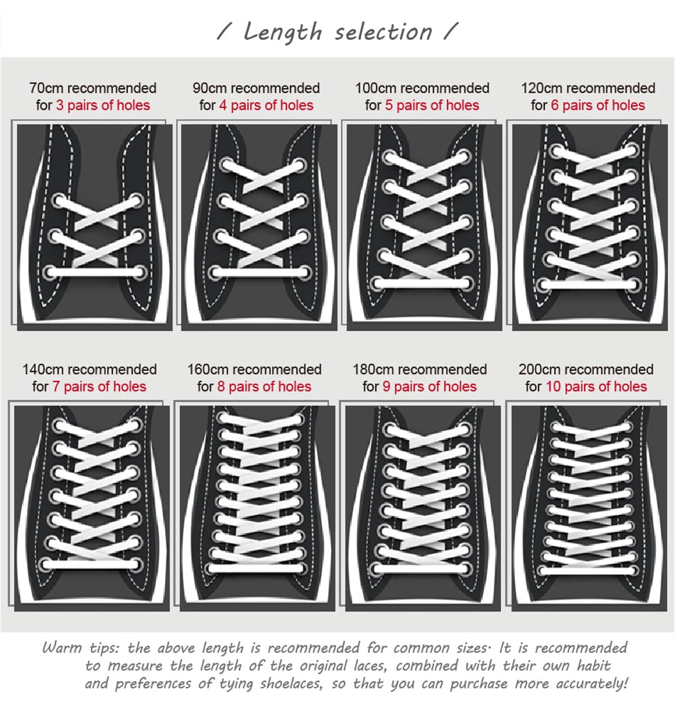 | Buyers please note:1.Please fill in your full name in the shipping address,And make sure the rightshipping address And zip code.If you don't do it,you may not be able to receive your packages. 2.Depending on the personal computer monitor, there will be Chromatic aberration, which is a normal phenomenon. 3.Shoelaces have a length error,the error range is about 1-3cm. 4.If you want to buy some tips for your shoelaces, we can install for you for free. |